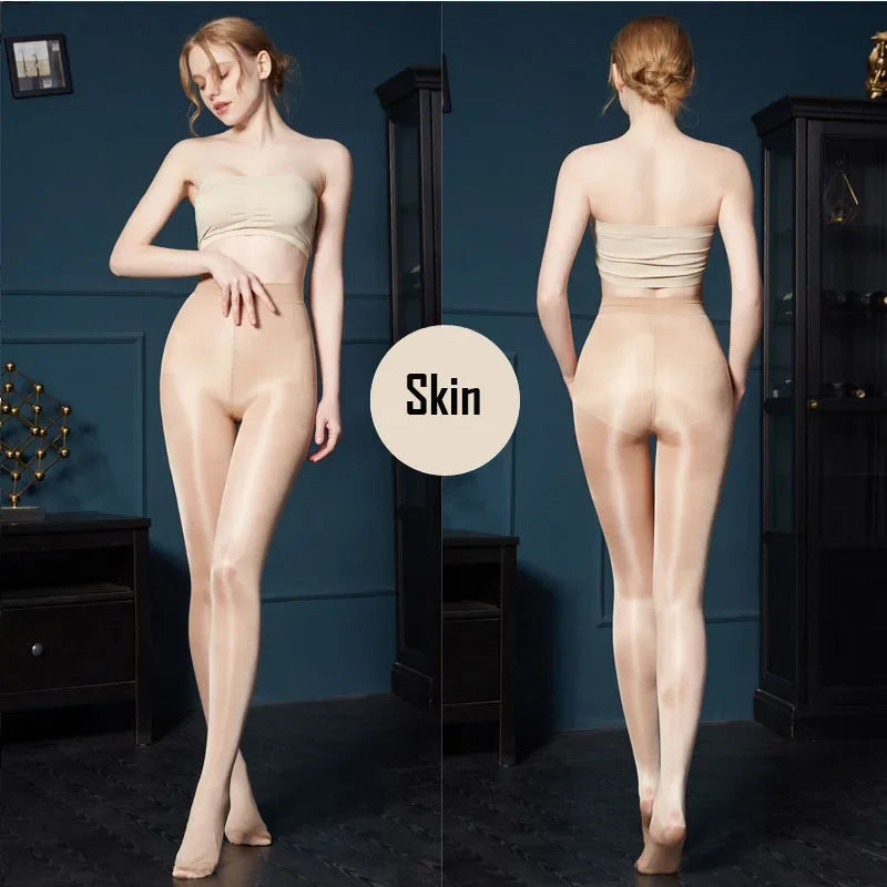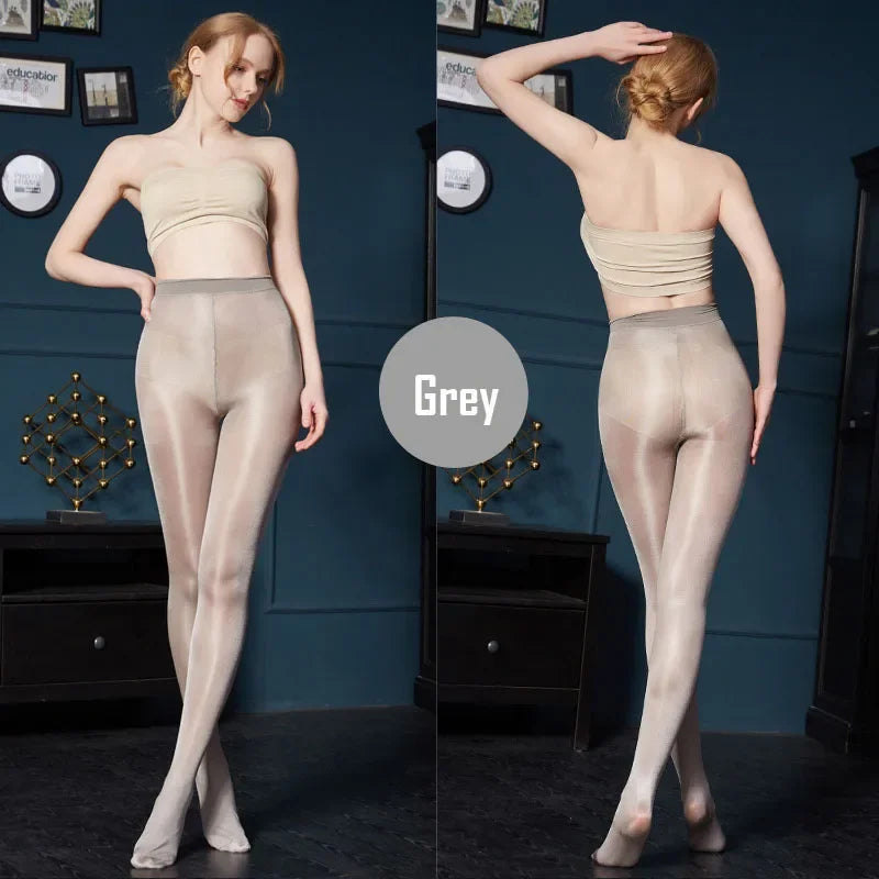 70D Women sexy oil Shiny solid glitter tights T crotch plus size sparkle pantyhose female black Glossy Stockings Dance Fitness