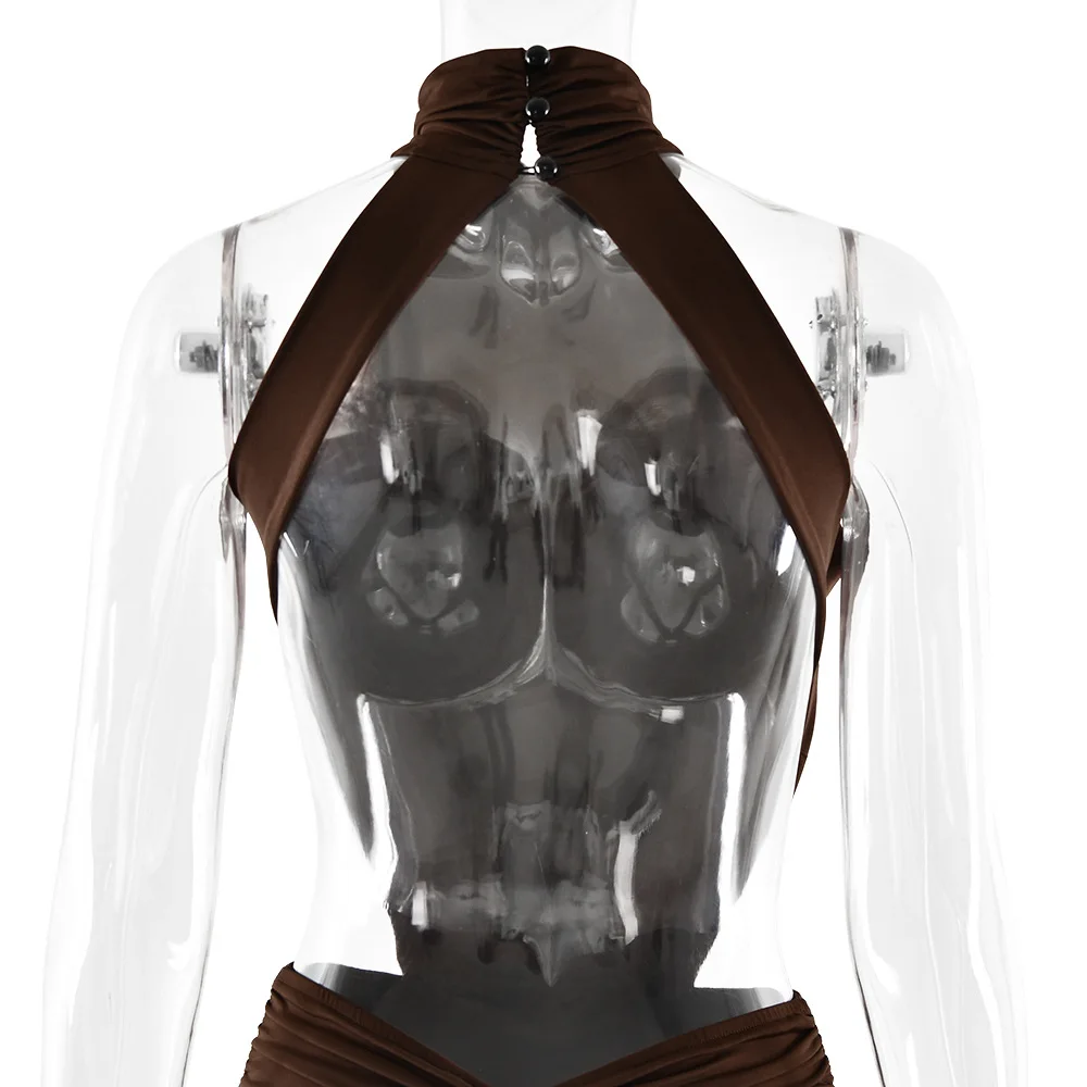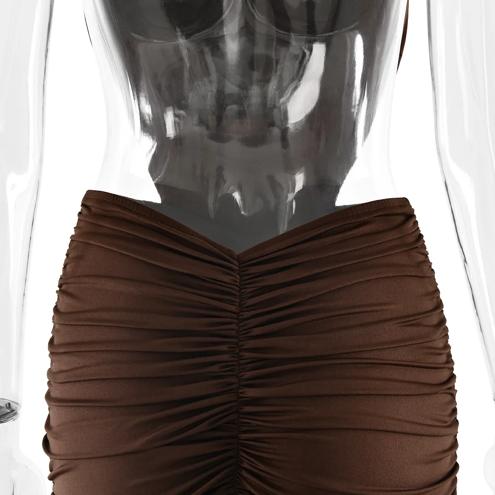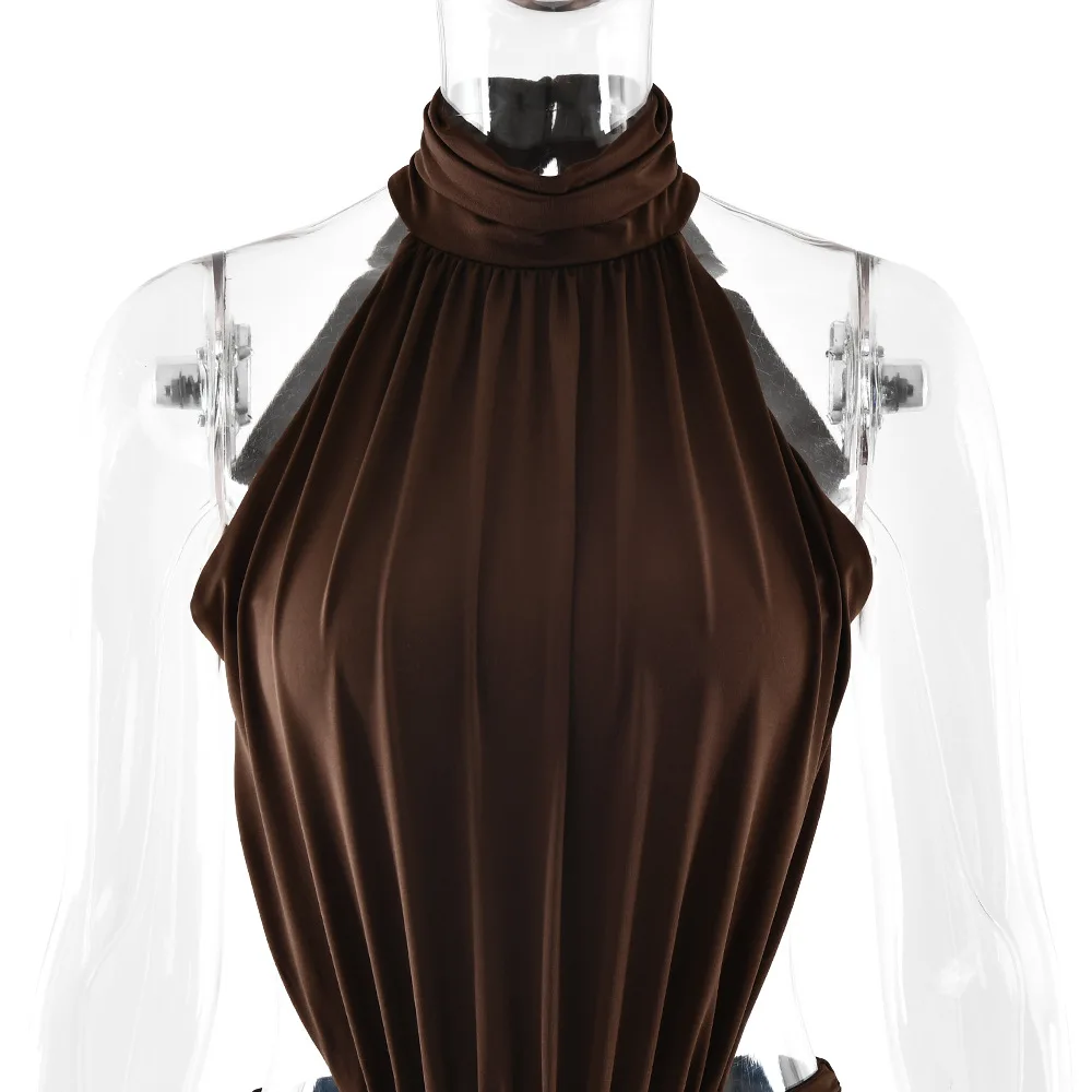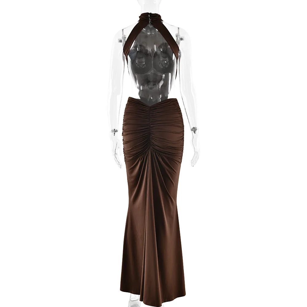 Turtleneck Backless Maxi Dress Women Gown Off-shoulder Sleeveless Ruched Bodycon Sexy Dress Female Pleated Club Party Long Dress